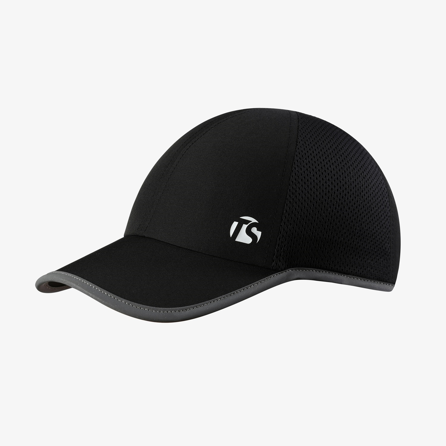 運動帽系列黑色跑步帽,專門根據戶外跑步需求定制,舒適防曬,輕便速干,黑色帽身搭配銀灰色包邊彰顯運動氣息,時尚大氣。